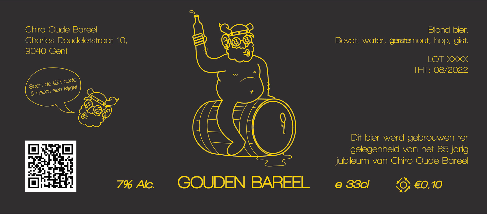 Ik kreeg dankzij Chiro Oude Bareel de kans om een etiket voor hun zelf-gebrouwen bier te ontwerpen. Een eigen uniek in Gent gebrouwen Chiro Oude Bareel-bier! Gouden Bareel is een blond bier van 7 % vol met een frisse, zomerse toets dat elke bierliefhebber zal appreciëren!