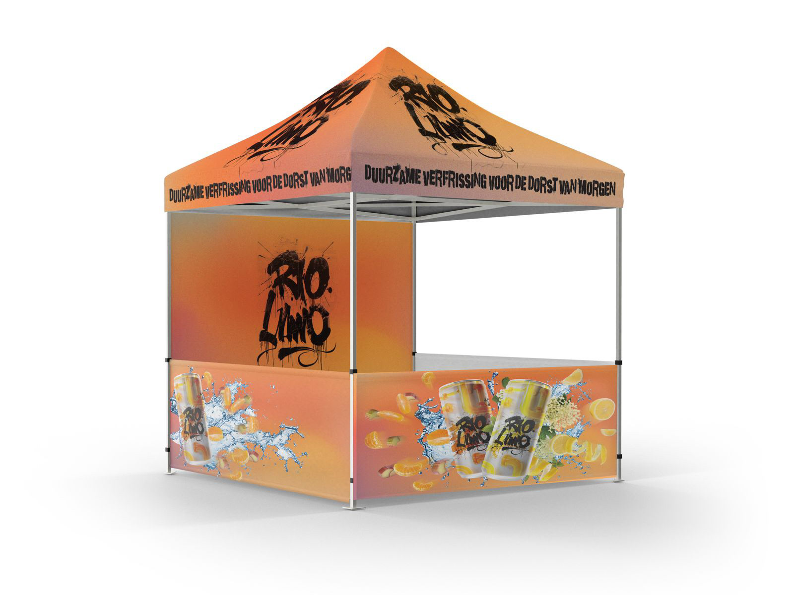 Mijn rol? Ik ontwierp een display die de blikjes op een toegankelijke en frisse manier in beeld brengt. Daarnaast zorgde ik ook voor de vormgeving van een promotent, bedoeld voor events en festivals, waar het Riolimo-verhaal visueel versterkt wordt.